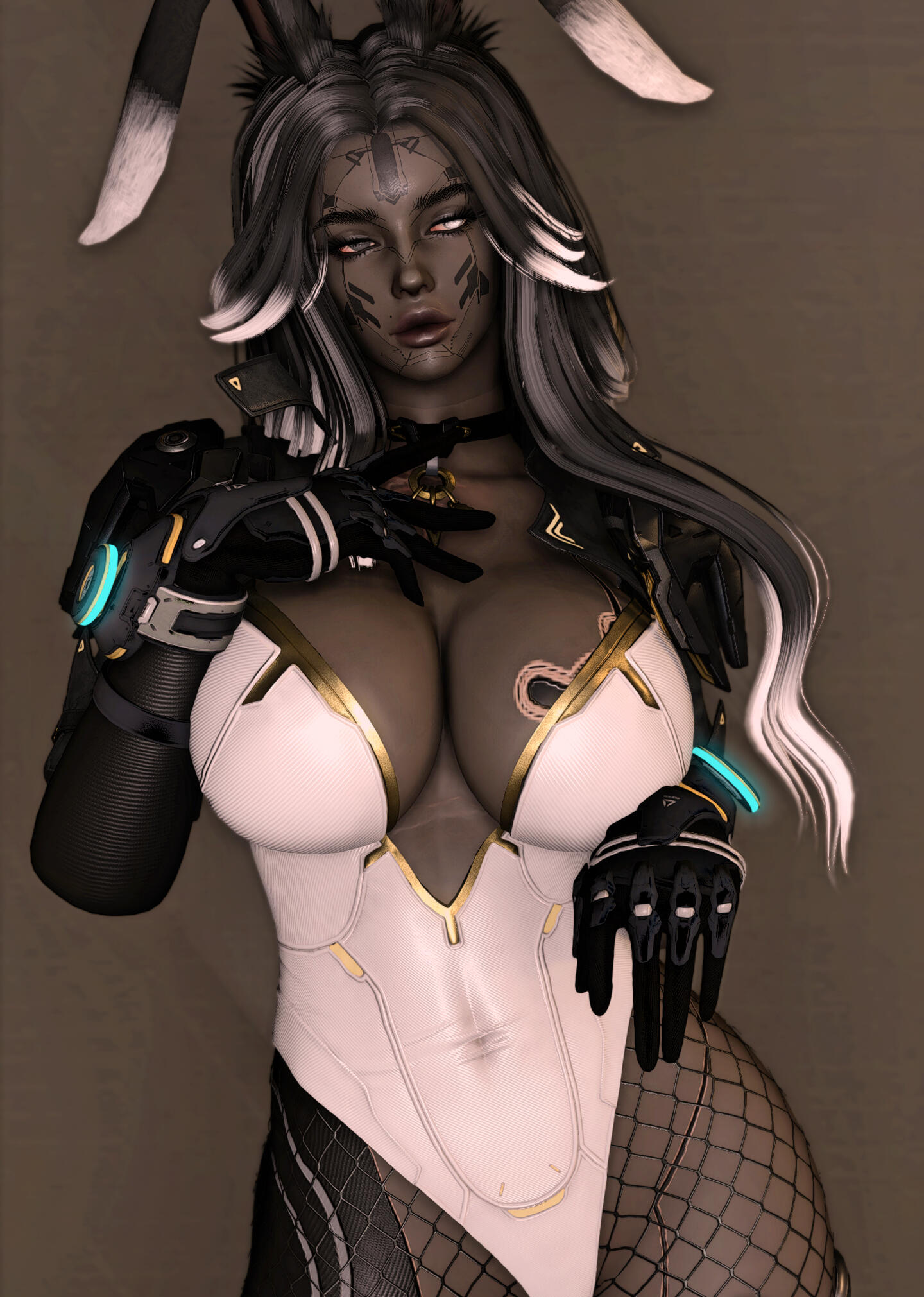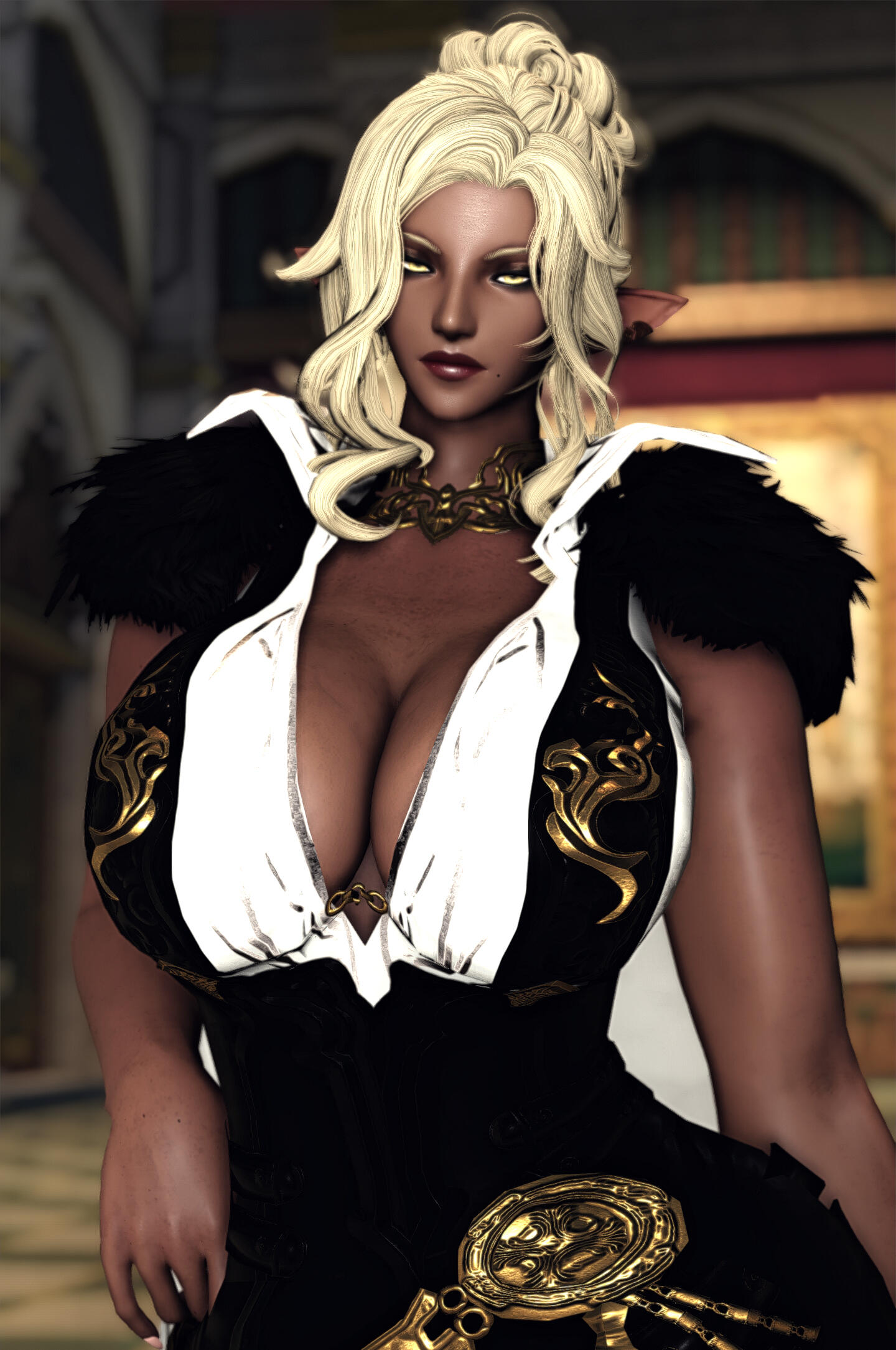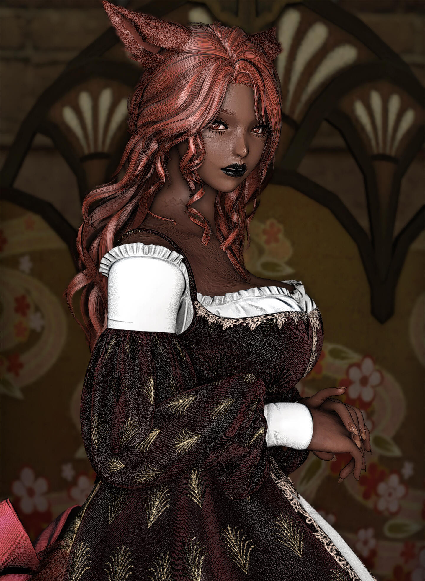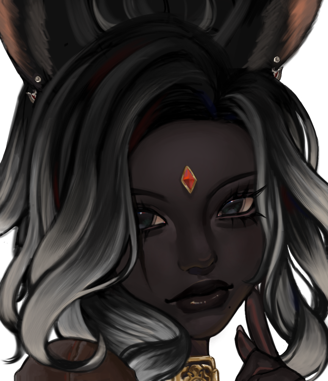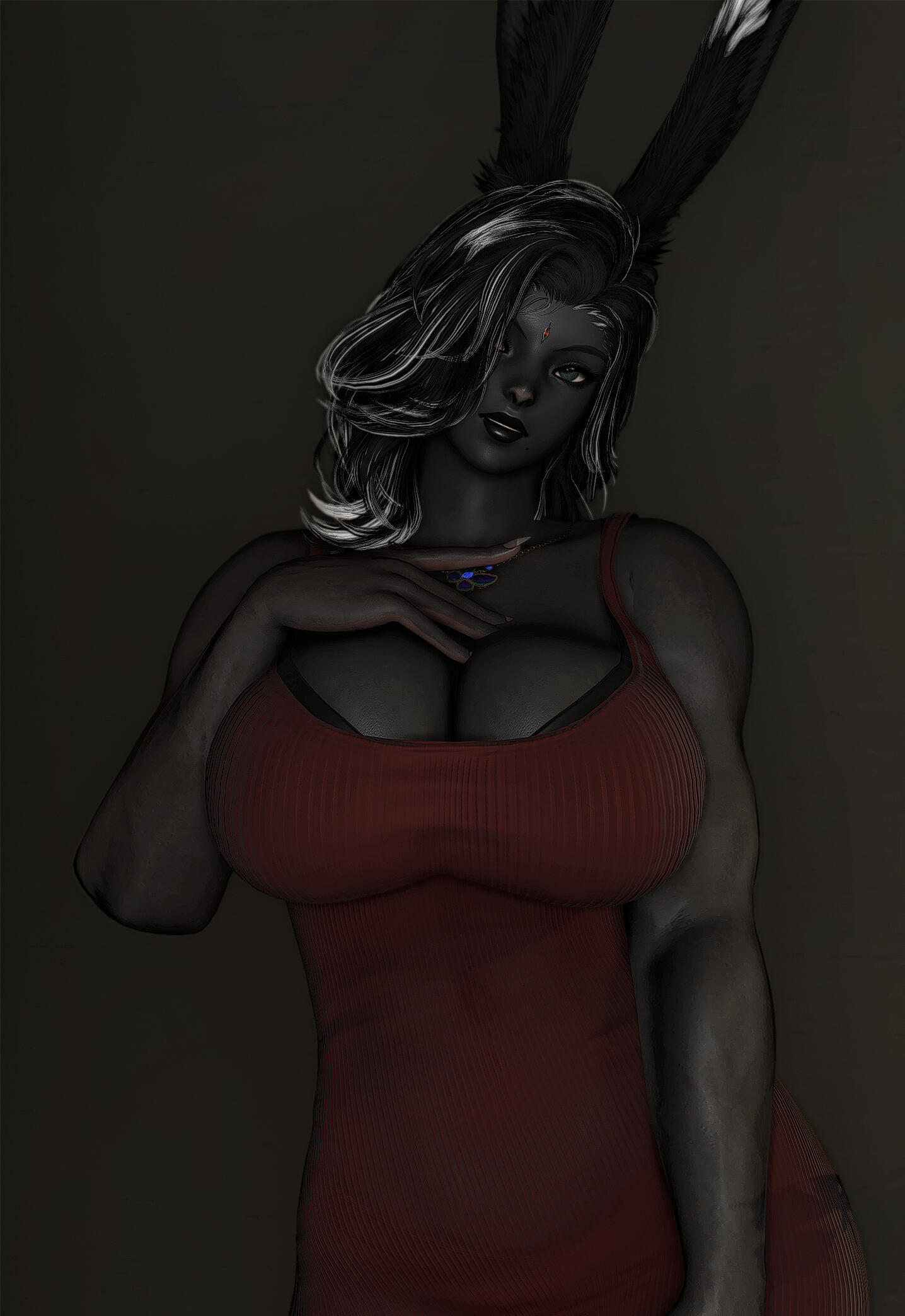 Queen was not born into cruelty. Her earliest memories were quiet ones: her mother singing softly in the hours before dawn, low lullabies meant to tame the dark and ease her into sleep. They cooked together, trained together, shared warmth by the hearth and the certainty of a bond that felt unshakable. The Matriarch of their tribe was revered by all, but to Queen she was simply mother, a woman of discipline, strength, and care. The change came gradually, without spectacle or rupture. The lullabies faded. Correction hardened into punishment. Affection became conditional, measured not by growth but by endurance. Queen grew quickly, towering over her peers while still young enough to believe suffering had purpose. Her strength ceased to be nurtured and began to be shaped. Her mother was no longer raising a daughter, but forging a successor. The marks left on Queen’s back were not mistakes; they were lessons meant to last. The cruelty was never absolute. There were still moments of softness, a rare smile, quiet praise, a hand brushing her hair aside. Those moments were enough to keep Queen hoping, enough to make her endure without resistance. Hope, she would later understand, was the most efficient form of restraint.That endurance fractured the morning a stranger screamed at her in a field. The girl accused Queen of stealing her sister, of taking her, of hiding her away. Queen dismissed it as grief misdirected, until she heard something in the girl’s voice that did not sound like confusion. It sounded like certainty. When Queen returned home at dawn, she heard her mother singing again for the first time in years. The old lullaby was unchanged, familiar enough to hollow her out rather than comfort her. She followed the sound into the Matriarch’s chamber and found her mother seated on the floor, bare-skinned and bleeding, calm as she sang. Her body was covered in script, ritual inscriptions carved slowly into flesh with a sharpened bone dipped in her own blood. Each mark was deliberate. Each stroke measured. Her voice never wavered. “It must be remembered,” her mother said. “Not with breath, but with flesh.” The truth unravelled then: the missing members of the tribe, the fading numbers, the rituals meant to extend their lives by shortening others. The girl’s sister had not been stolen. She had been sacrificed. Queen had not been raised to rule, but to inherit obedience to a will older than memory and older than blood.Queen confronted her mother. There was no struggle and no defence. The Matriarch welcomed the blade. “You already are me,” she said. Queen struck once, cleanly. Mercy and execution shared the same motion. She buried her mother with her own hands. The tribe did not stop her. They watched in silence, afraid not of what she had done, but of what remained in her place. Queen offered them nothing. She left with the axe her mother had once placed in her hands and did not look back. The girl remained. She did not scream, beg, or curse her. She looked at Queen and recognised what the tribe could not: that Queen had been shaped by the same cruelty that took her sister, that survival did not absolve her, but neither had it made her willing. The girl did not forgive her and did not ask for repentance. She named nothing. She simply saw her clearly. That recognition did not wound Queen, and it did not save her. It stayed with her because it was accurate.Time passed, and the world began to fail. Light crept across the land of the First, not as salvation but as erasure. Night vanished. Shadow thinned. Entire regions were swallowed by radiance that stripped form and will alike. Queen watched it advance without prayer or protest. She did not fight the Flood as a hero, nor submit to it as a martyr. She endured it as she had endured everything else, by refusing to yield meaning to it. When the balance finally shattered, Queen survived where others did not; not through purity nor blessing, but through sheer refusal to dissolve. She watched civilisation fracture, watched light consume what memory could not preserve. When the Flood was at last halted, the First that remained was wounded and unrecognisable.It was then that Queen followed the whispers of paths between worlds. Not hope, nor escape, drew her onward, but curiosity. The existence of a way out was simply another truth to be tested. She crossed the rift deliberately, through methods better left unnamed, and emerged upon the Source carrying no reverence for the miracle of it. She settled in Ishgard, a city shaped by cold, austerity, and inherited cruelty. It suited her. The climate demanded endurance. The people understood hierarchy. Stone remembered what flesh forgot. Centuries passed. Queen lived far longer than her kind should. She watched wars flare and fade, saints and tyrants wear the same faces across different ages. She never joined them. Her presence alone silenced rooms. She stood just under twelve fulms tall, carved of stone and shadow, her charcoal skin and stark hair marked by scars she never hid. Each one carried meaning. None were regrets.She does not seek redemption. She does not ask forgiveness. She does not believe in absolution. What was shaped into her cannot be undone, and she has never desired that it be. Those who kneel before her do so without instruction. Queen does not discourage it, nor does she reward it. Remaining near her is itself a choice, and one most cannot sustain for long. Obedience is not demanded; it is assumed, and tested the moment it is offered. Cruelty, to her, is not indulgence but function. Through fear, pain, and restraint, she strips away pretence and watches what survives. Many break quickly. Some endure longer than expected. Very few last long enough to be remembered. Connection, when it occurs, does not change her. It exists only as continued presence under full knowledge of what she is. Those who remain do so without illusion, and Queen has never offered safety in return. Sh