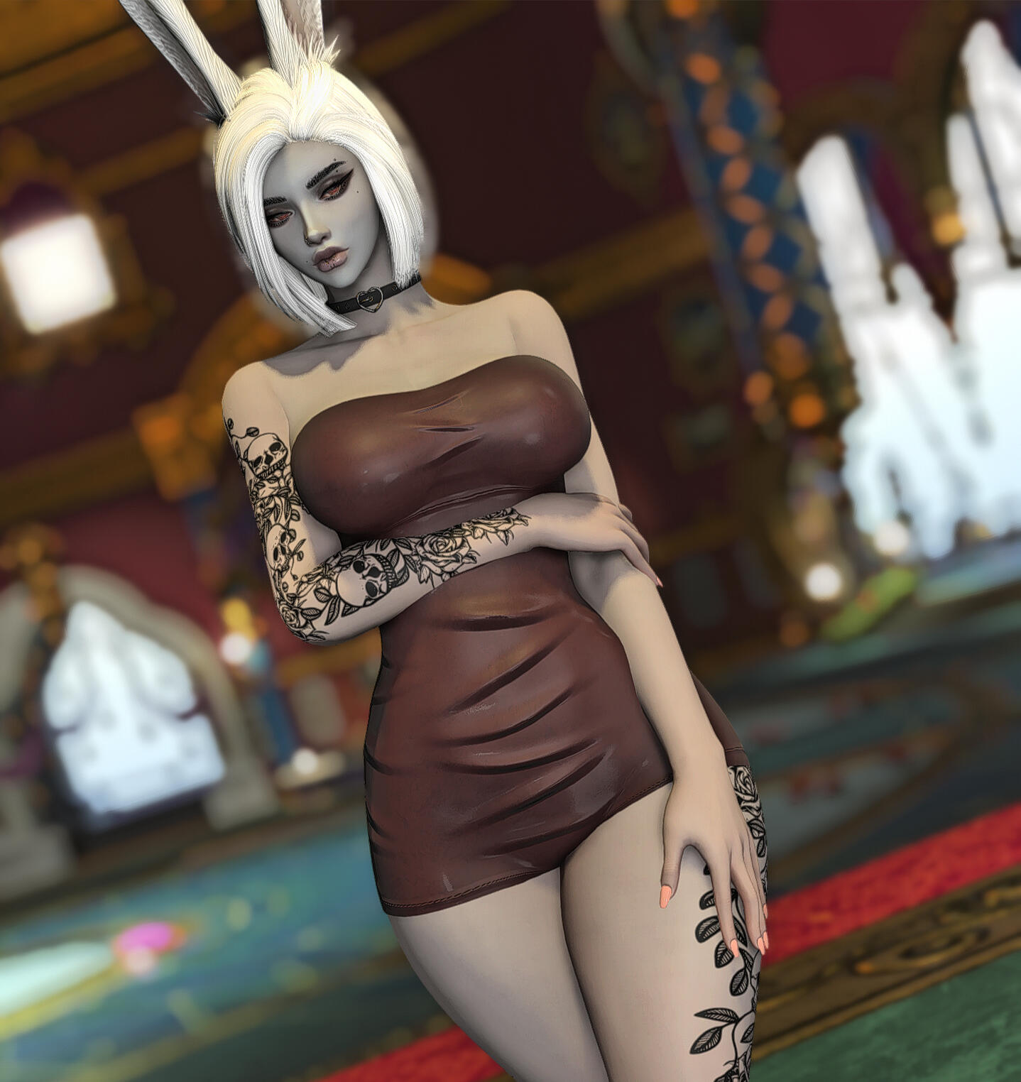 Queen was not born into cruelty. Her earliest memories were quiet ones: her mother singing softly in the hours before dawn, low lullabies meant to tame the dark and ease her into sleep. They cooked together, trained together, shared warmth by the hearth and the certainty of a bond that felt unshakable. The Matriarch of their tribe was revered by all, but to Queen she was simply mother, a woman of discipline, strength, and care. The change came gradually, without spectacle or rupture. The lullabies faded. Correction hardened into punishment. Affection became conditional, measured not by growth but by endurance. Queen grew quickly, towering over her peers while still young enough to believe suffering had purpose. Her strength ceased to be nurtured and began to be shaped. Her mother was no longer raising a daughter, but forging a successor. The marks left on Queen’s back were not mistakes; they were lessons meant to last. The cruelty was never absolute. There were still moments of softness, a rare smile, quiet praise, a hand brushing her hair aside. Those moments were enough to keep Queen hoping, enough to make her endure without resistance. Hope, she would later understand, was the most efficient form of restraint.That endurance fractured the morning a stranger screamed at her in a field. The girl accused Queen of stealing her sister, of taking her, of hiding her away. Queen dismissed it as grief misdirected, until she heard something in the girl’s voice that did not sound like confusion. It sounded like certainty. When Queen returned home at dawn, she heard her mother singing again for the first time in years. The old lullaby was unchanged, familiar enough to hollow her out rather than comfort her. She followed the sound into the Matriarch’s chamber and found her mother seated on the floor, bare-skinned and bleeding, calm as she sang. Her body was covered in script, ritual inscriptions carved slowly into flesh with a sharpened bone dipped in her own blood. Each mark was deliberate. Each stroke measured. Her voice never wavered. “It must be remembered,” her mother said. “Not with breath, but with flesh.” The truth unravelled then: the missing members of the tribe, the fading numbers, the rituals meant to extend their lives by shortening others. The girl’s sister had not been stolen. She had been sacrificed. Queen had not been raised to rule, but to inherit obedience to a will older than memory and older than blood.Queen confronted her mother. There was no struggle and no defence. The Matriarch welcomed the blade. “You already are me,” she said. Queen struck once, cleanly. Mercy and execution shared the same motion. She buried her mother with her own hands. The tribe did not stop her. They watched in silence, afraid not of what she had done, but of what remained in her place. Queen offered them nothing. She left with the axe her mother had once placed in her hands and did not look back. The girl remained. She did not scream, beg, or curse her. She looked at Queen and recognised what the tribe could not: that Queen had been shaped by the same cruelty that took her sister, that survival did not absolve her, but neither had it made her willing. The girl did not forgive her and did not ask for repentance. She named nothing. She simply saw her clearly. That recognition did not wound Queen, and it did not save her. It stayed with her because it was accurate.Time passed, and the world began to fail. Light crept across the land of the First, not as salvation but as erasure. Night vanished. Shadow thinned. Entire regions were swallowed by radiance that stripped form and will alike. Queen watched it advance without prayer or protest. She did not fight the Flood as a hero, nor submit to it as a martyr. She endured it as she had endured everything else, by refusing to yield meaning to it. When the balance finally shattered, Queen survived where others did not; not through purity nor blessing, but through sheer refusal to dissolve. She watched civilisation fracture, watched light consume what memory could not preserve. When the Flood was at last halted, the First that remained was wounded and unrecognisable.It was then that Queen followed the whispers of paths between worlds. Not hope, nor escape, drew her onward, but curiosity. The existence of a way out was simply another truth to be tested. She crossed the rift deliberately, through methods better left unnamed, and emerged upon the Source carrying no reverence for the miracle of it. She settled in Ishgard, a city shaped by cold, austerity, and inherited cruelty. It suited her. The climate demanded endurance. The people understood hierarchy. Stone remembered what flesh forgot. Centuries passed. Queen lived far longer than her kind should. She watched wars flare and fade, saints and tyrants wear the same faces across different ages. She never joined them. Her presence alone silenced rooms. She stood just under twelve fulms tall, carved of stone and shadow, her charcoal skin and stark hair marked by scars she never hid. Each one carried meaning. None were regrets.She does not seek redemption. She does not ask forgiveness. She does not believe in absolution. What was shaped into her cannot be undone, and she has never desired that it be. Those who kneel before her do so without instruction. Queen does not discourage it, nor does she reward it. Remaining near her is itself a choice, and one most cannot sustain for long. Obedience is not demanded; it is assumed, and tested the moment it is offered. Cruelty, to her, is not indulgence but function. Through fear, pain, and restraint, she strips away pretence and watches what survives. Many break quickly. Some endure longer than expected. Very few last long enough to be remembered. Connection, when it occurs, does not change her. It exists only as continued presence under full knowledge of what she is. Those who remain do so without illusion, and Queen has never offered safety in return. Sh
